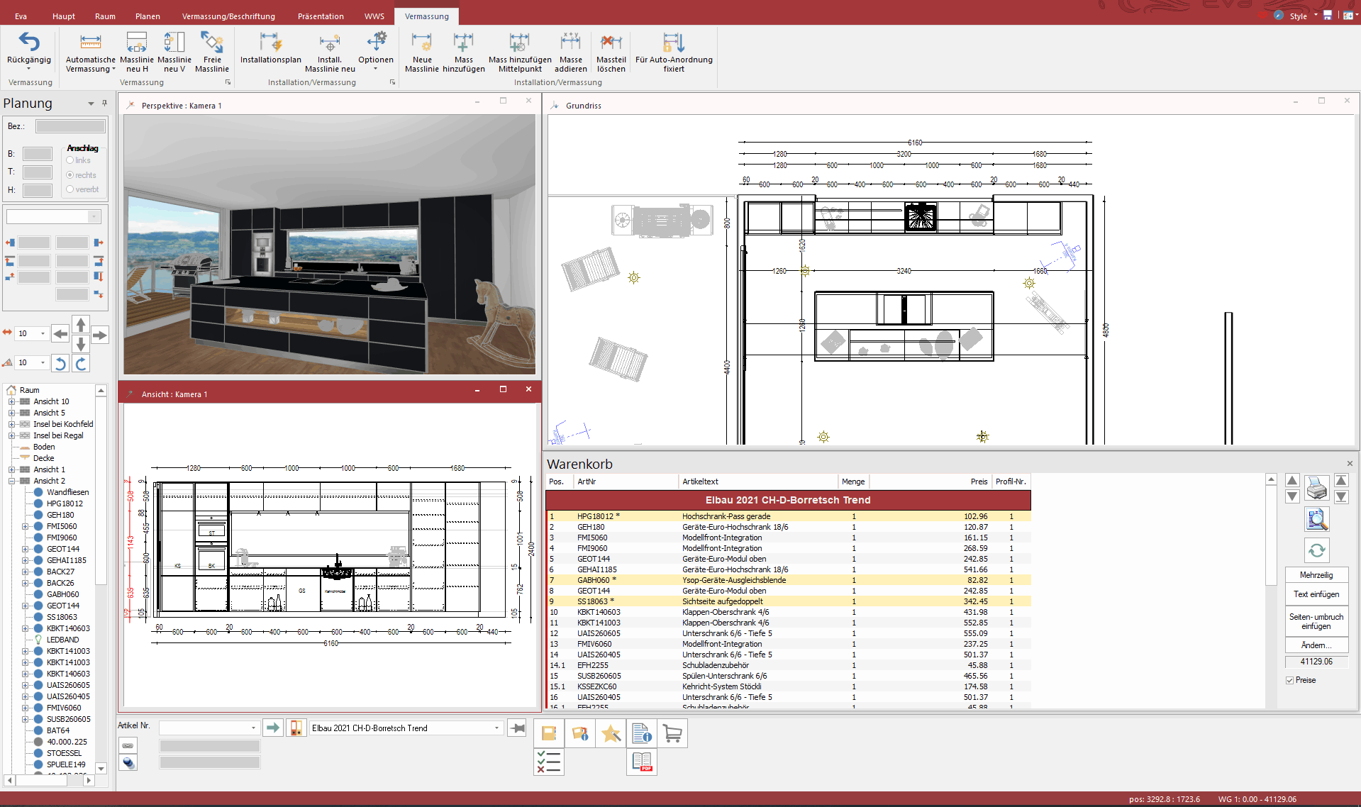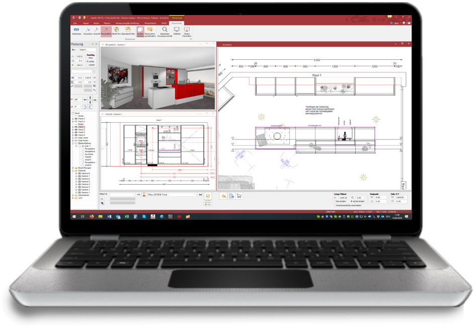 Mit wenig Aufwand in einer übersichtlichen, einfachen Planungs-Software schnell und einfach eine Küche, ein Bad oder Schränke/Büro planen. Die intelligente Platzierlogik mit integriertem Innenleben in der Ansicht, bietet Übersicht und Transparenz und setzt die Möbel automatisch an die richtige Stelle. In Echtzeit werden 3D-Grafiken, fotorealistische Bilder erstellt und in der vollintegrierten Kalkulation berechnet. Die Genauigkeit der automatischen Vermassung und das manuelle Beschriften der Planung runden das Ganze ab.